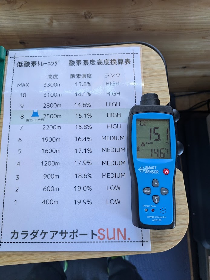 標高約2500m(富士山5合目)での低酸素トレーニング